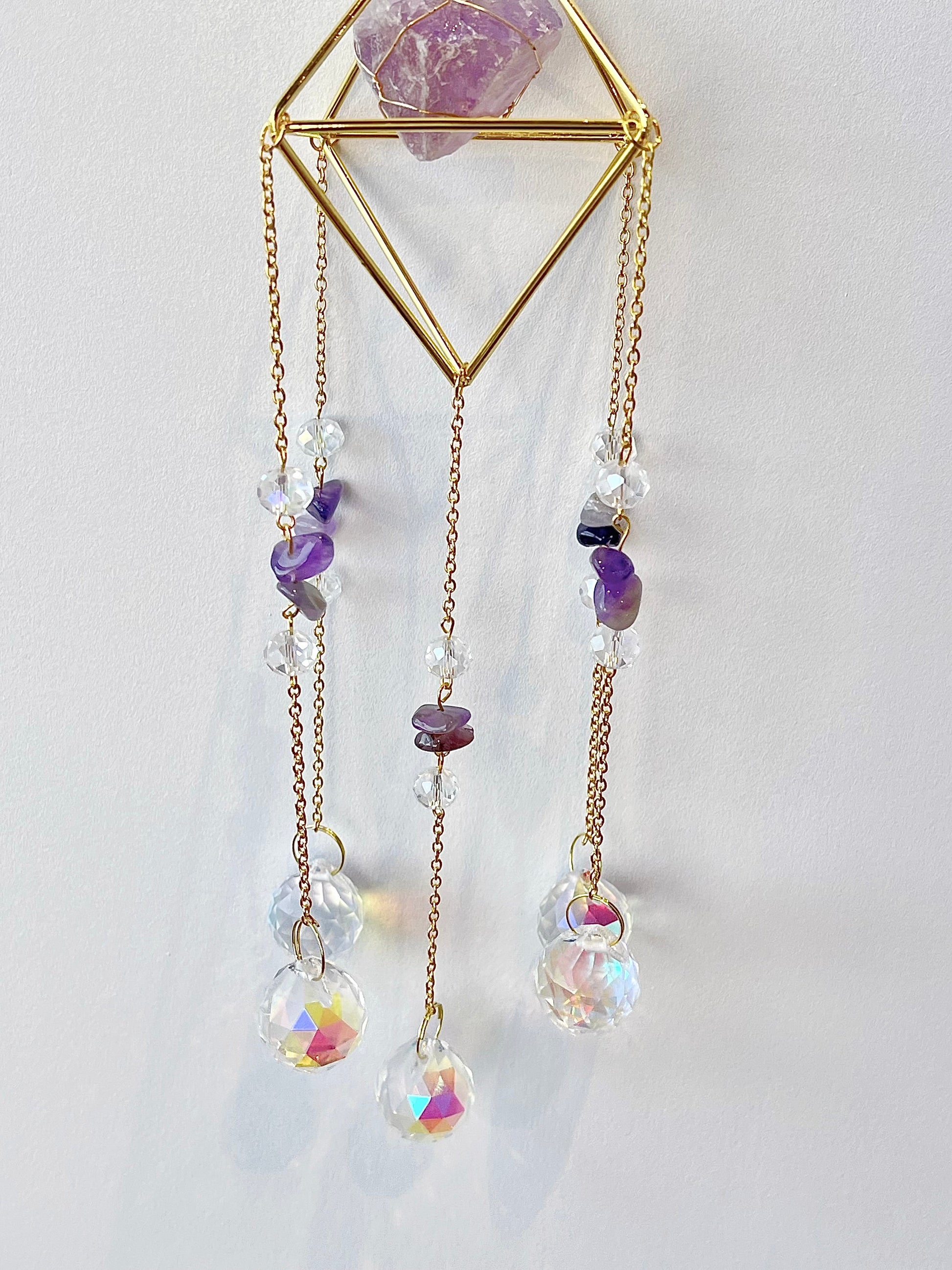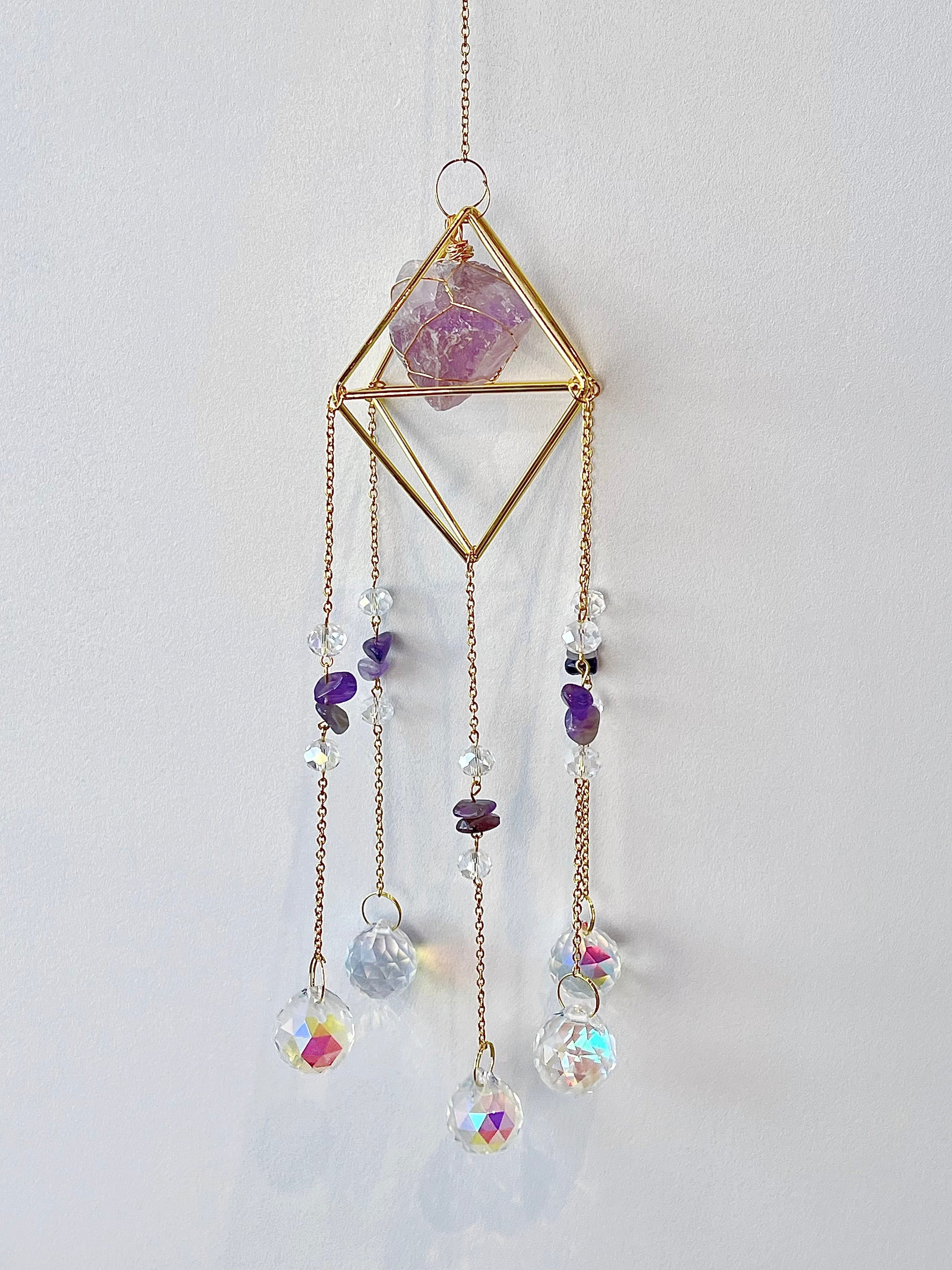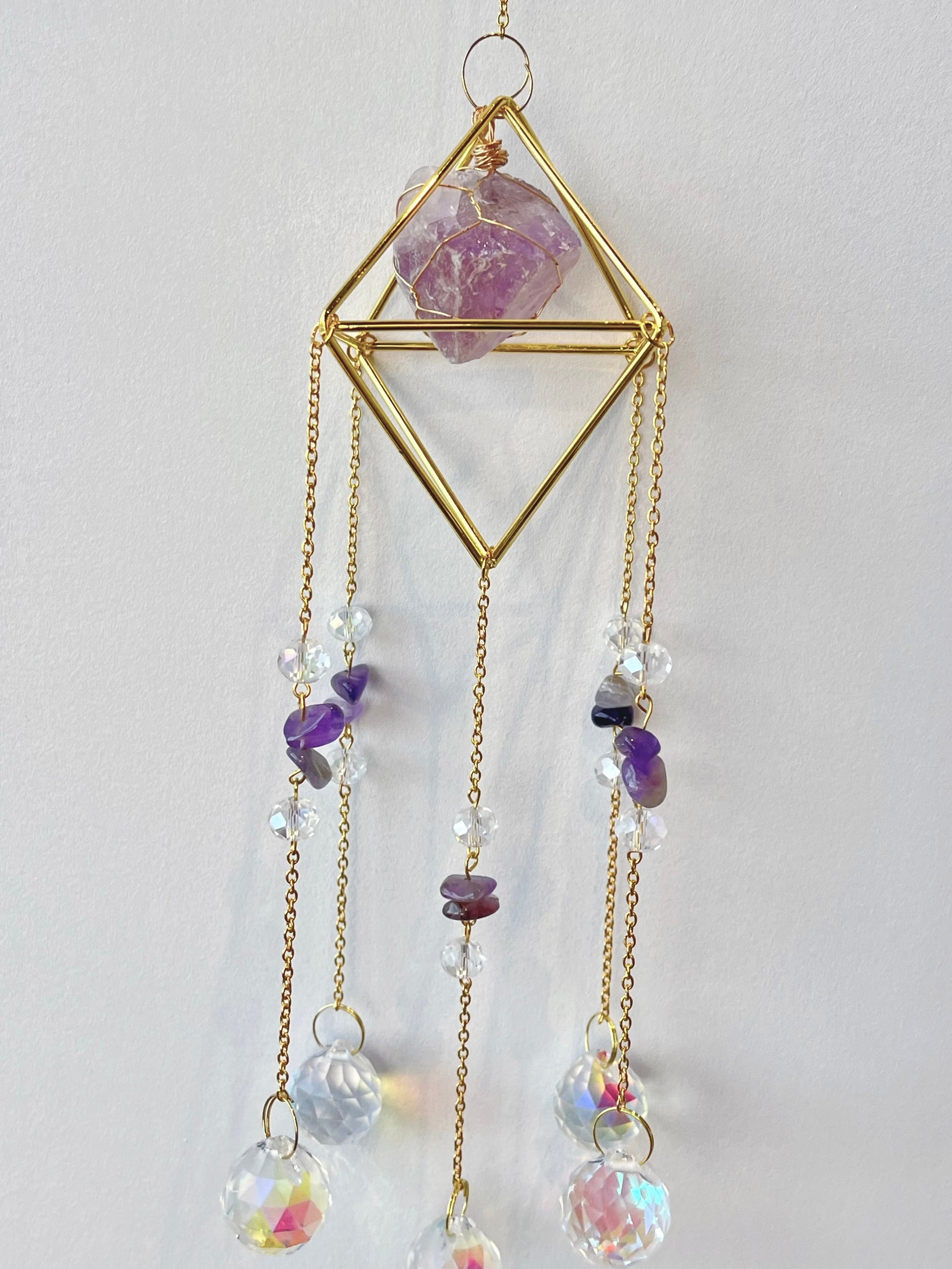 Består av Ametyst, messing og glass.