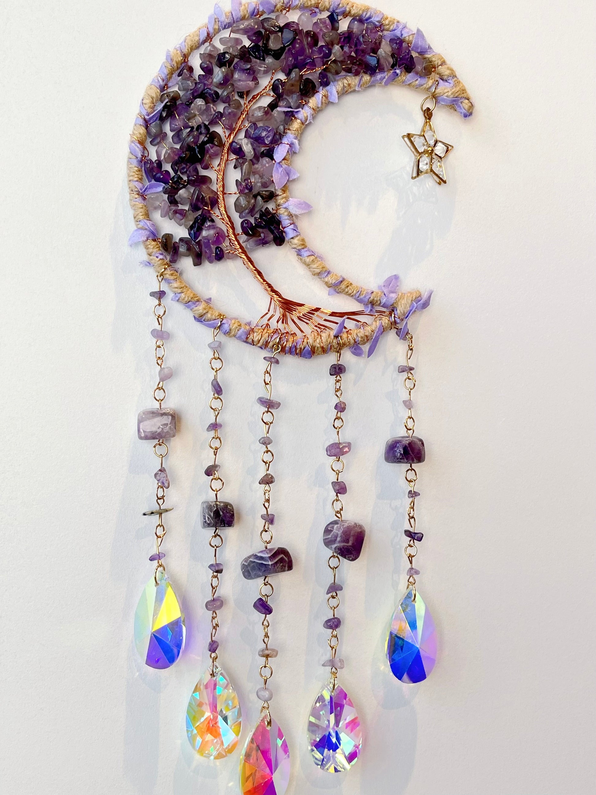 Består av Ametyst, messing og glass.