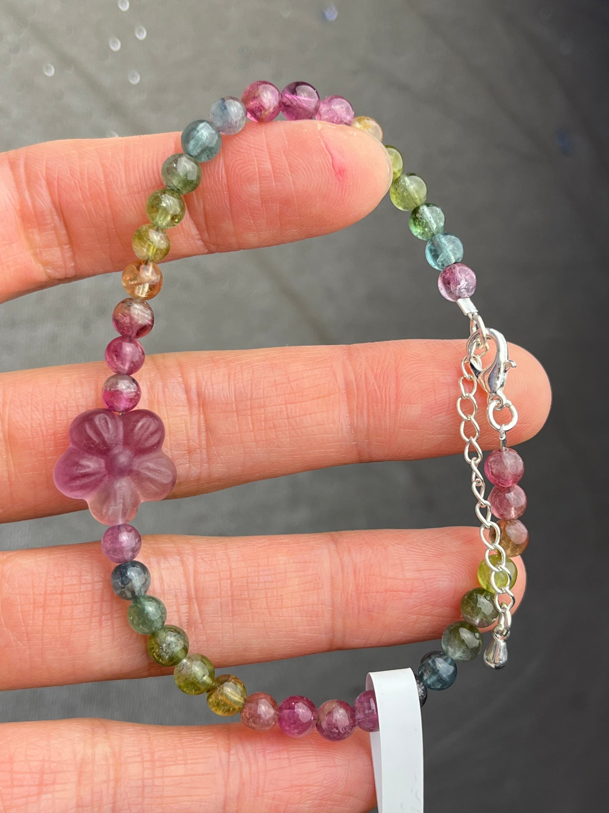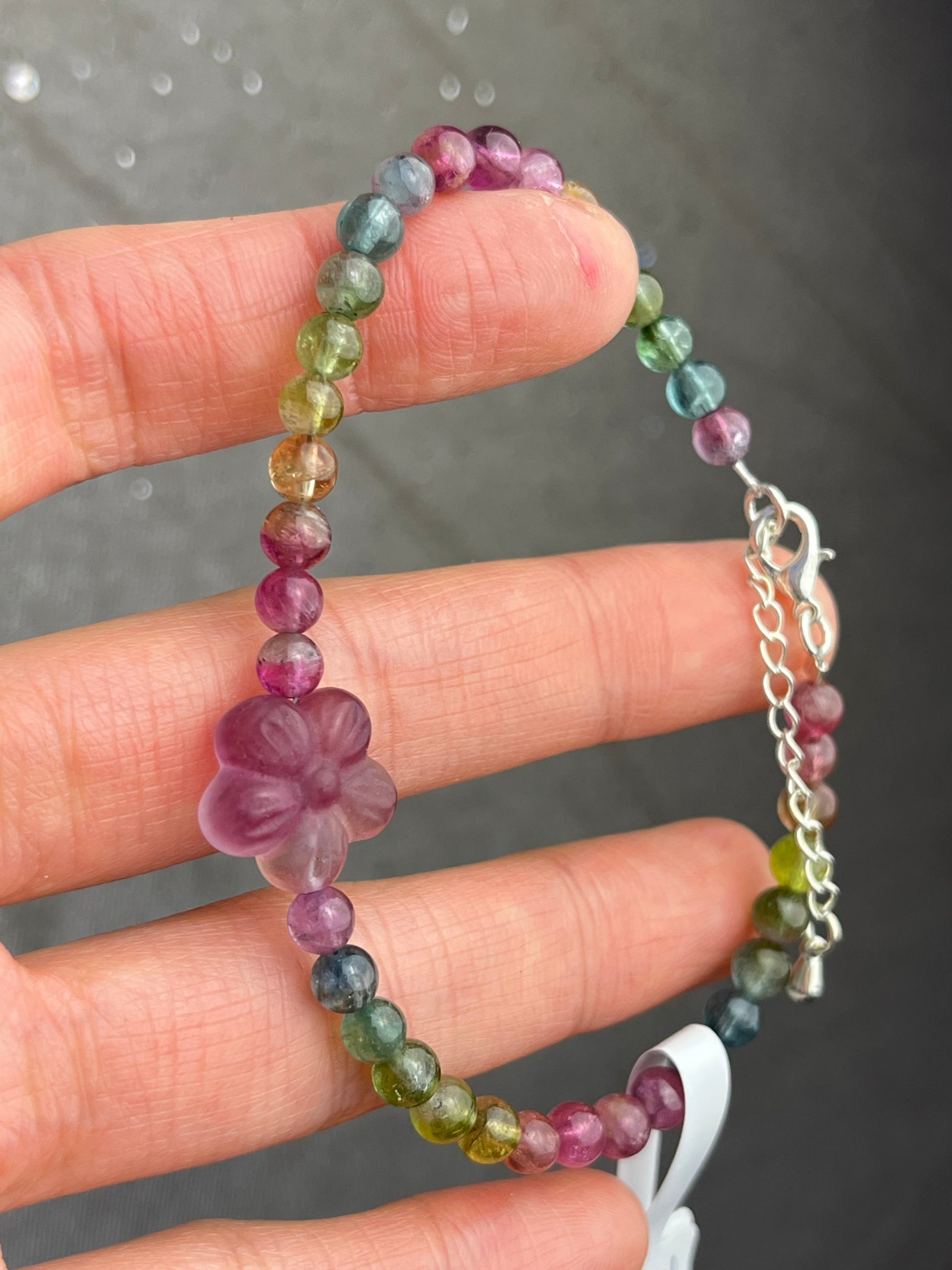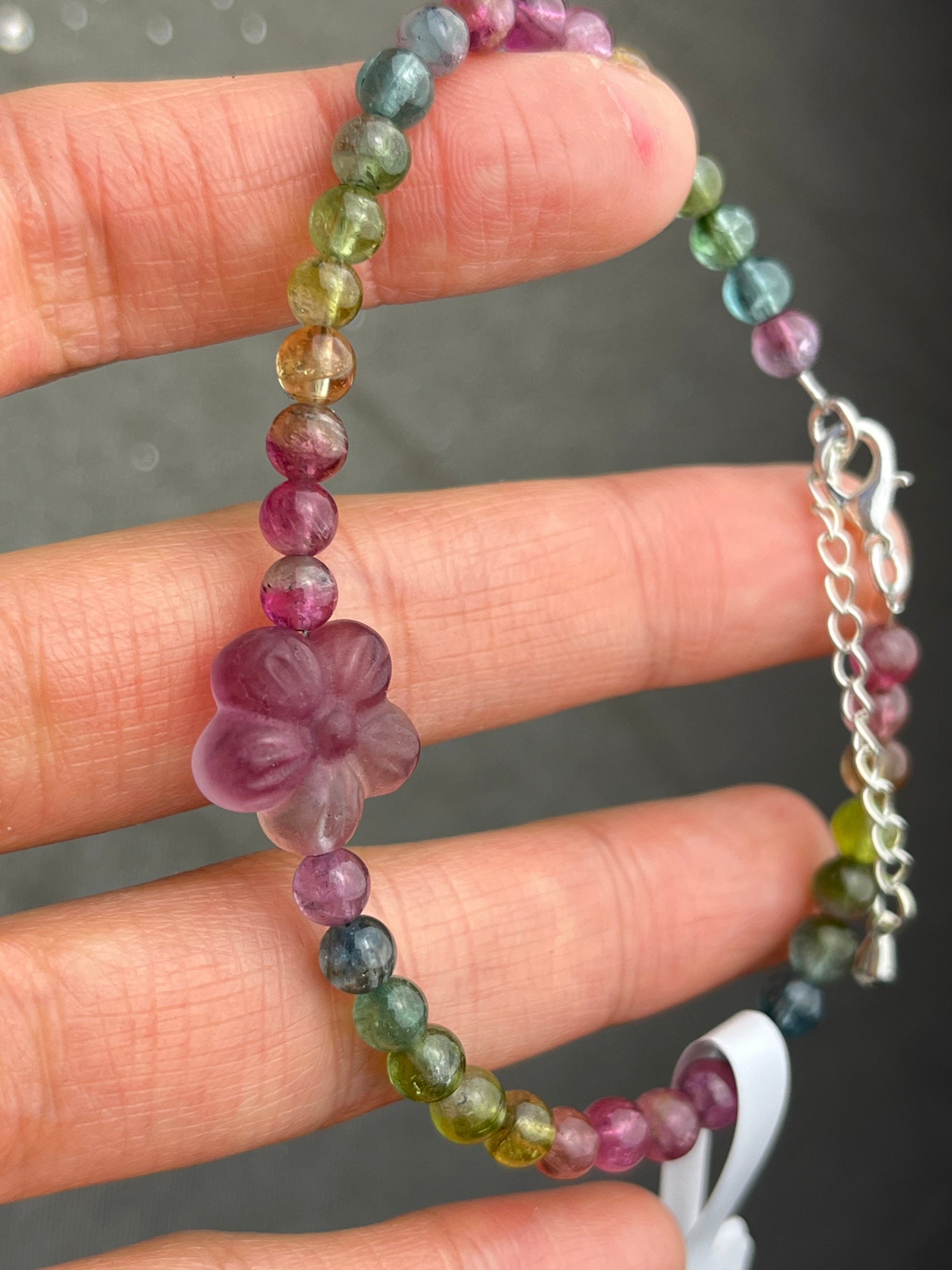 Regnbue Turmalin+Fluoritt- Håndlaget armbånd med karabinlås, God kvalitet