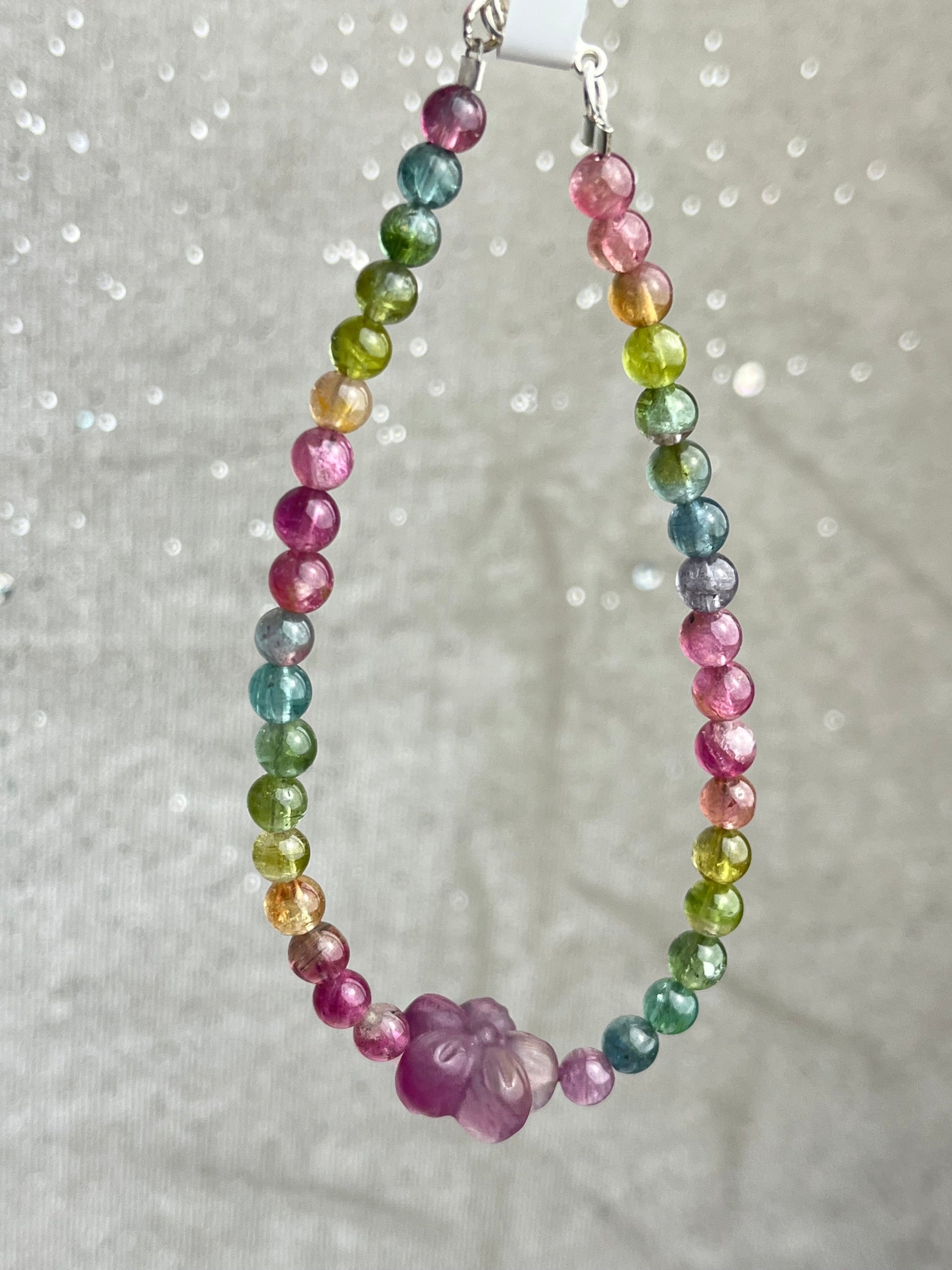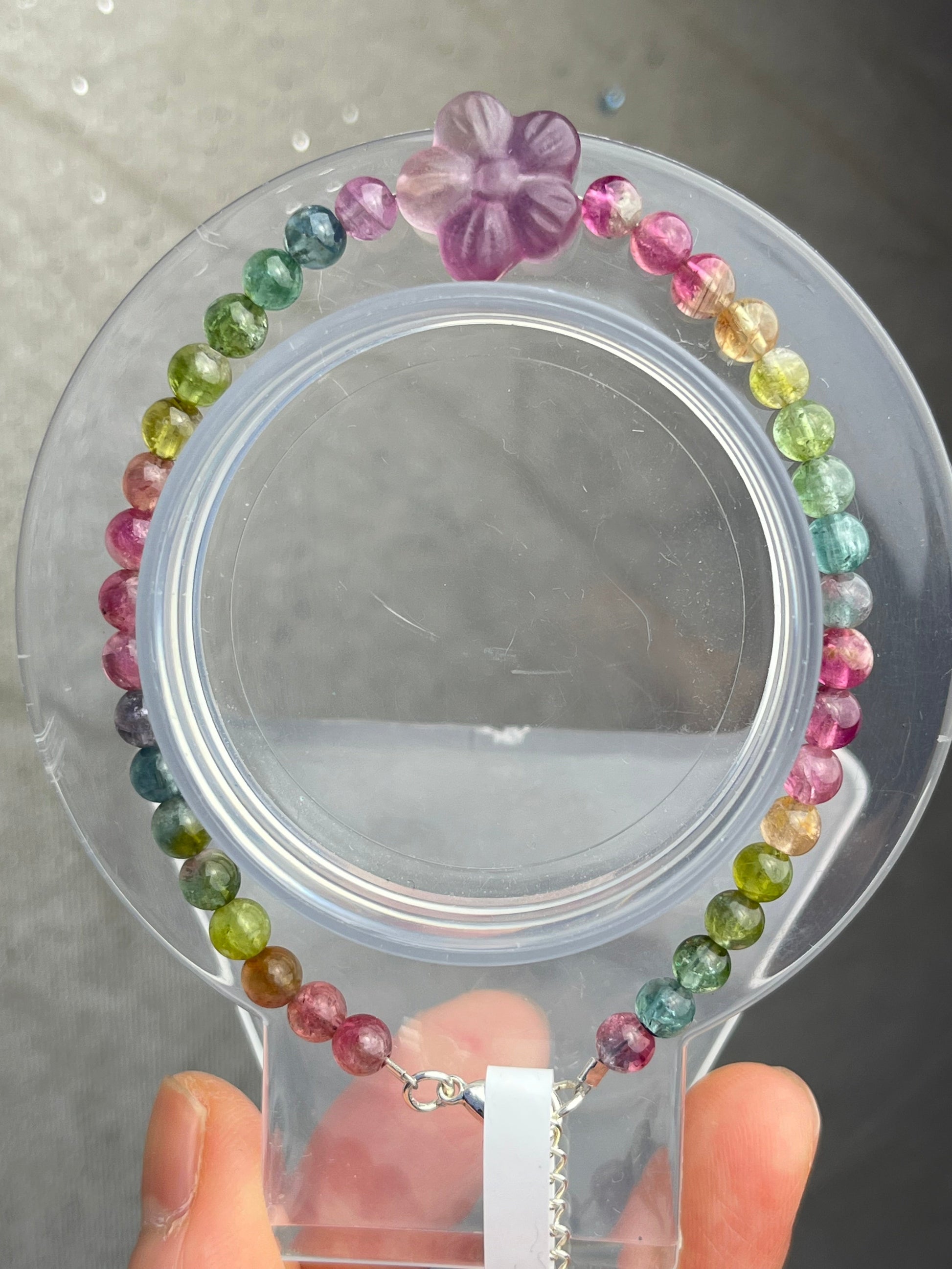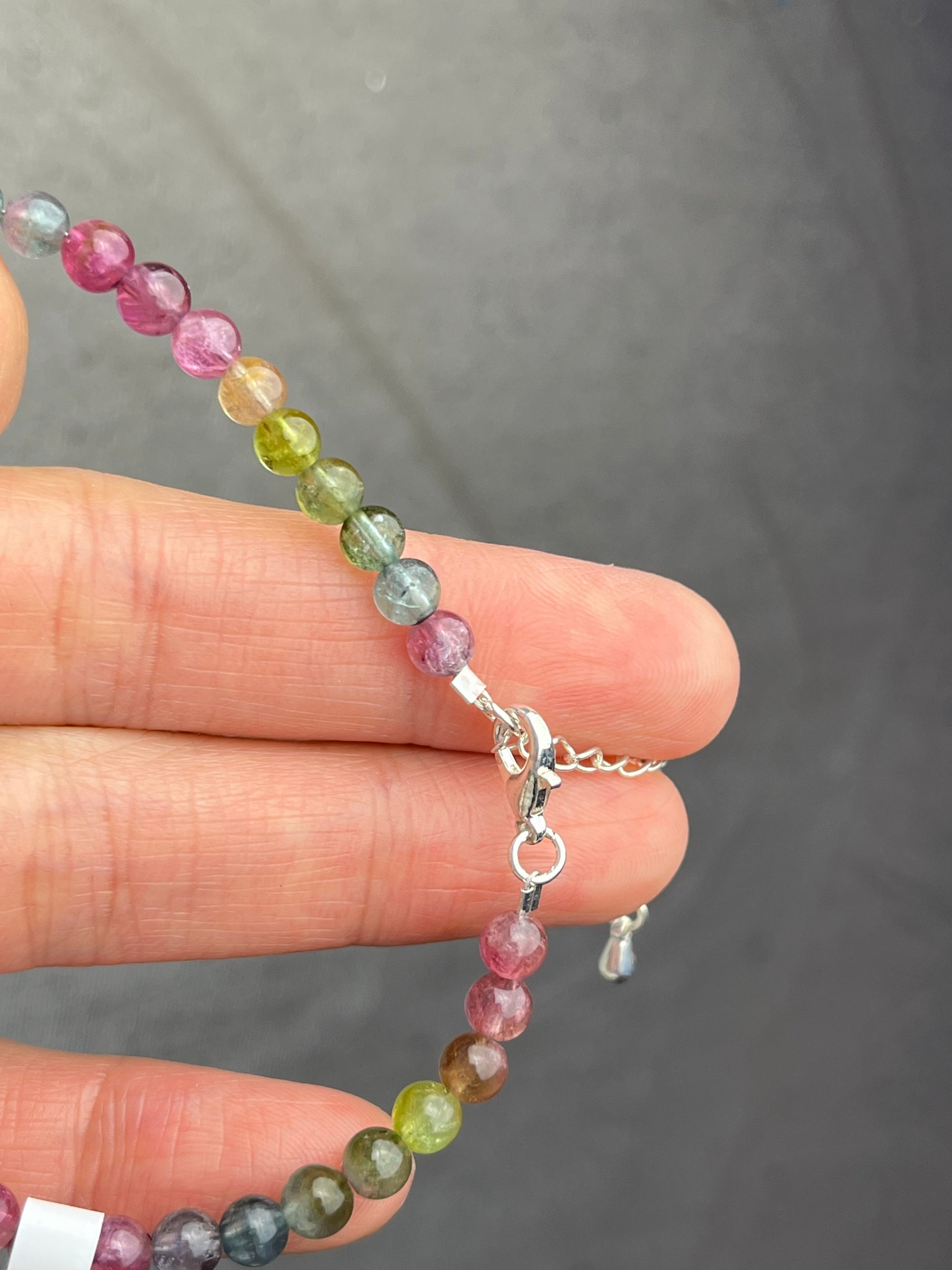 Regnbue Turmalin+Fluoritt- Håndlaget armbånd med karabinlås, God kvalitet